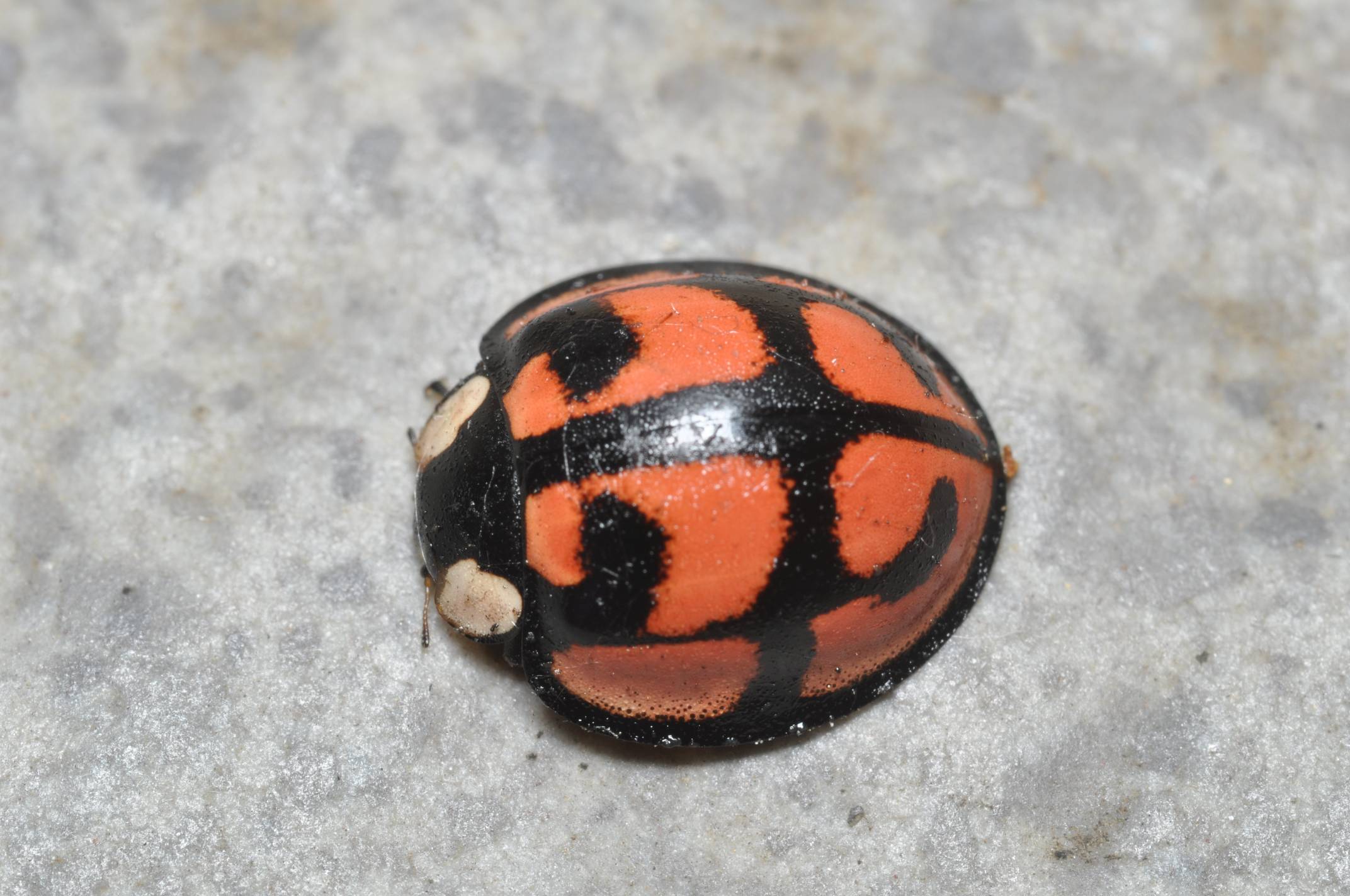 図鑑に掲載されているカメノコテントウの斑紋はこの写真のタイプが多いようです。写真の個体の体長は約10.3mm。