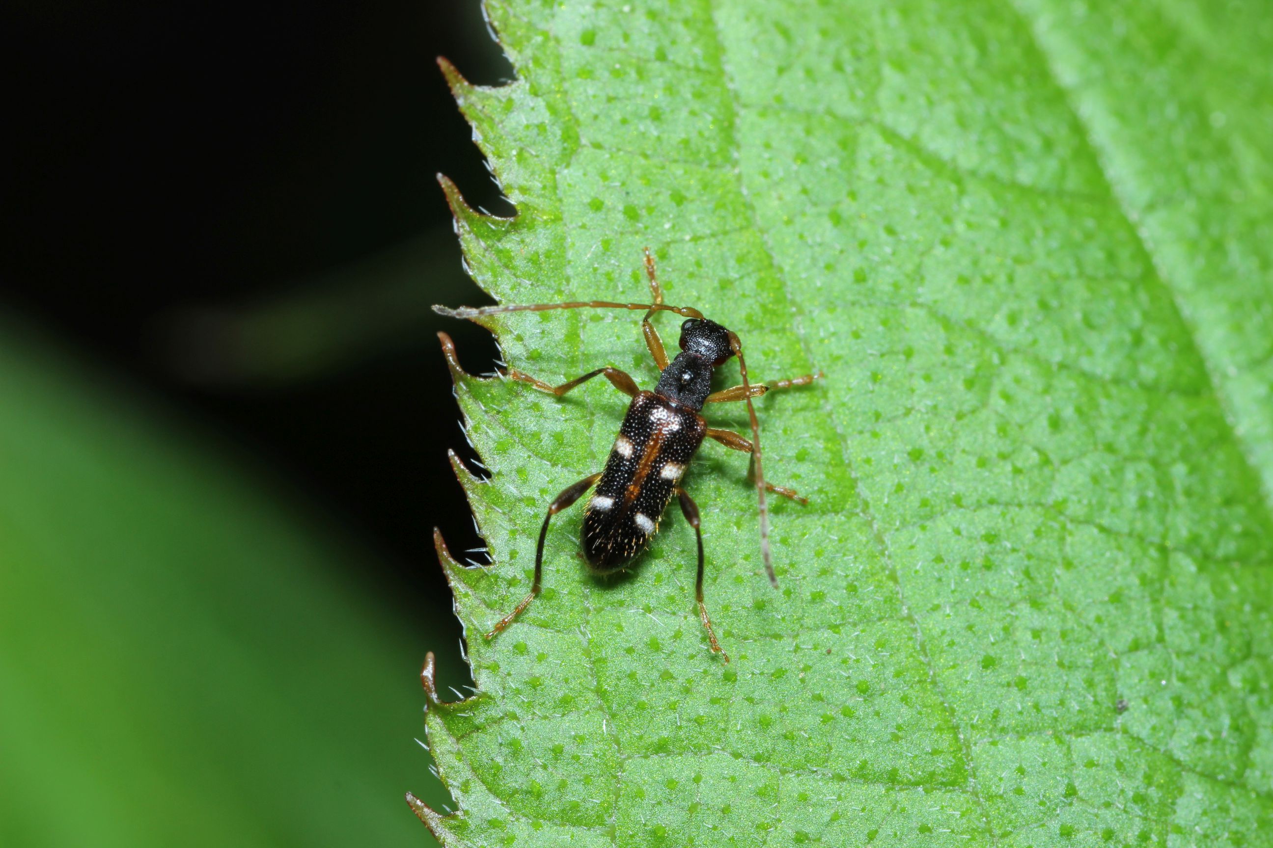 保育社の原色日本甲虫図鑑Wでは、フタオビノミハナカミキリとういう名前で掲載されています。また、フタオビヒメハナカミキリという名称が使われていたこともあります。体長4mm程度の非常に小さなカミキリムシ。