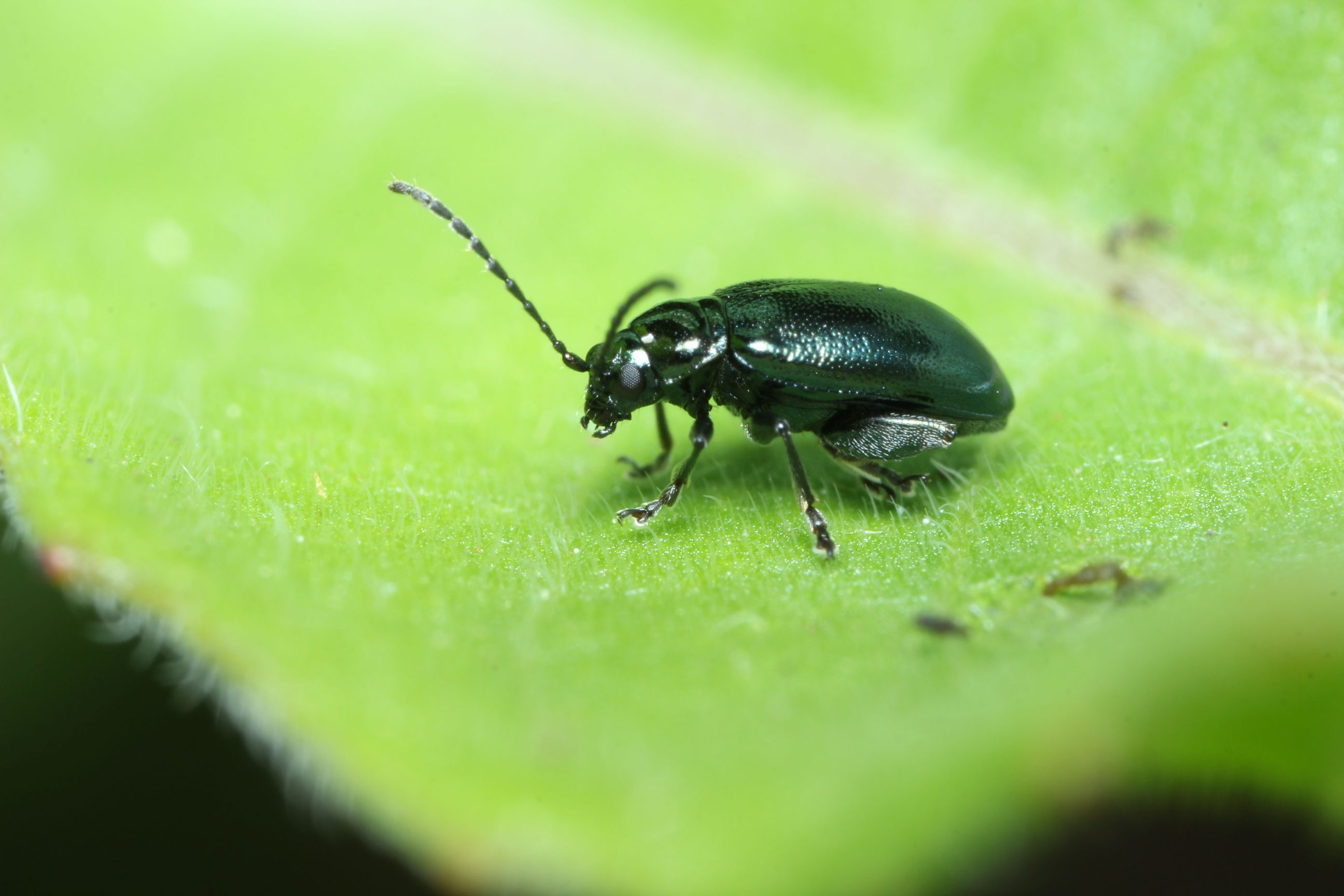 カミナリハムシ(Altica属)の特徴は、前胸背板の後縁にくっきりとした横溝があることのようです。