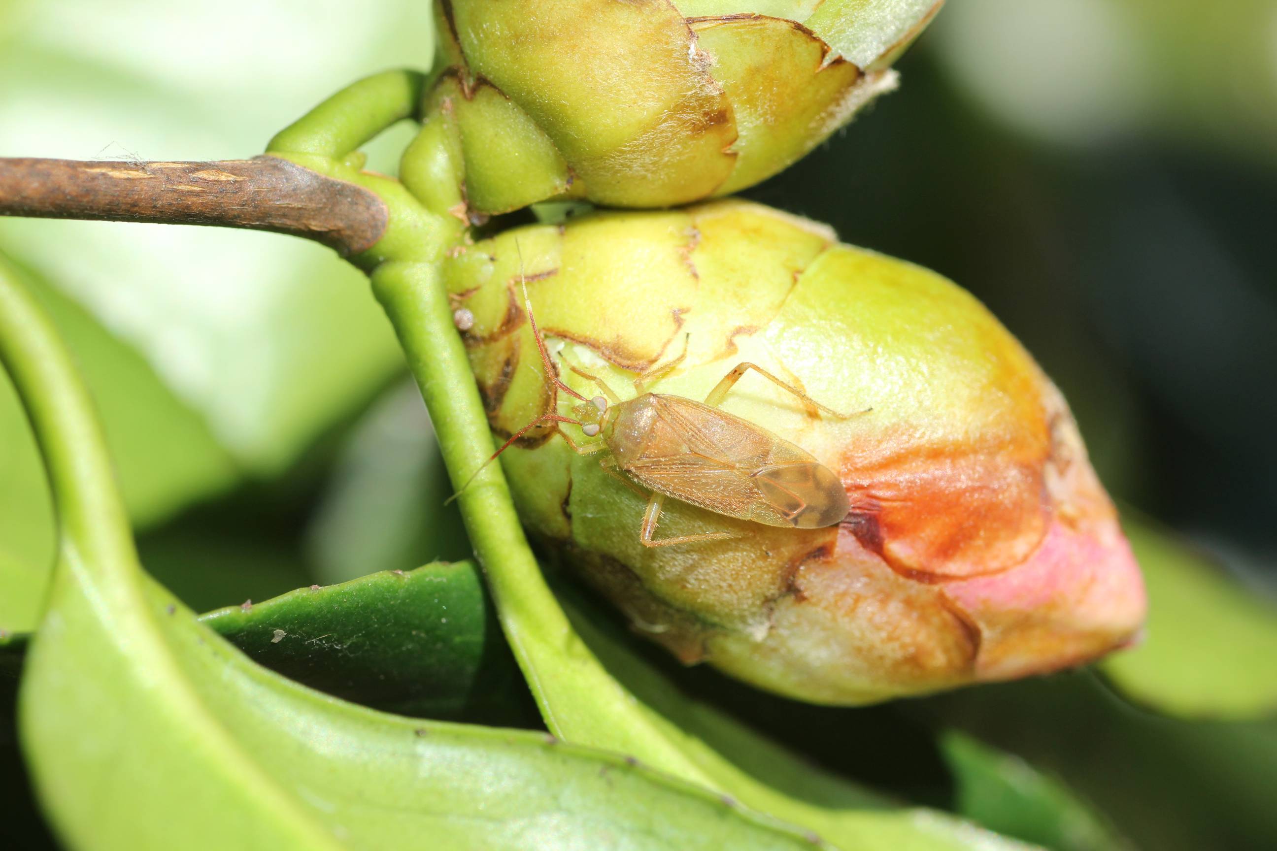 ツバキの蕾に止まっていました。翅端まで11.8mm。