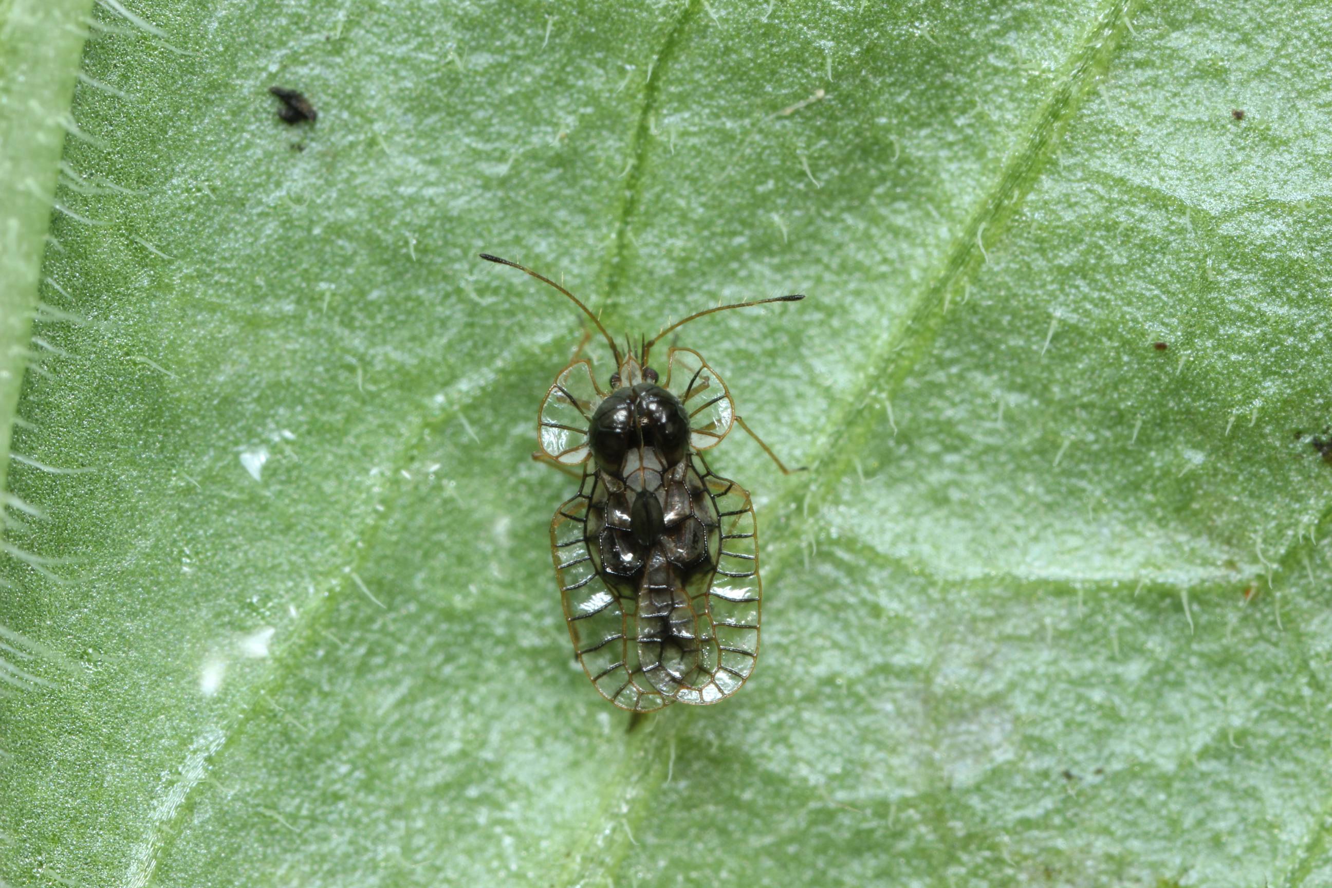 キク科の植物に付くヨコバイを探してハルジオンのロゼットをめくっていたらキクグンバイを見つけました。