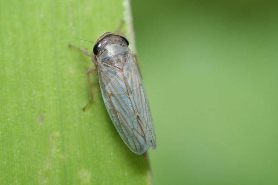 | 翅端までの体長は、写真の個体で約5.1mm。国立科博専報(42)「相模灘沿岸部の半翅類(昆虫綱)」友国、林 によるとクロミャクイチモンジヨコバイは、好海浜性のヨコバイだそうです。黒脈という名前が付いていますが、翅脈はそれほどくっきりとした黒ではありません。北隆館の原色昆虫大圖鑑によると、イネ科の植物をホストにしているそうです。 |
