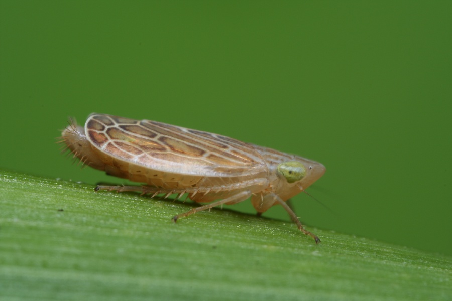 長池公園では比較的普通に見られるヨコバイです。名前の通り、頭部はやや尖っており、頭部から胸部にかけて褐色の2本の縦筋が通っています。写真の個体の体長は約4.4mm。