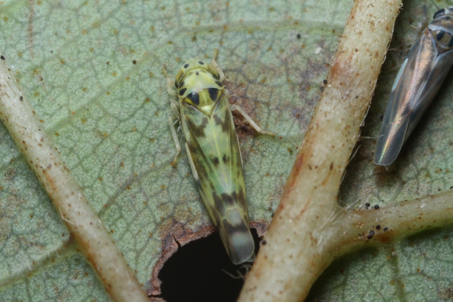 ケヤマハンノキの葉の裏側に止まっていました。翅端までの体長は約3.5mm。