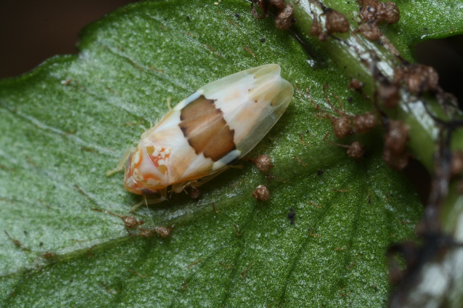 オビヒメヨコバイの帯の幅はバリエーションがありますが、図鑑に掲載されているのは、最も帯の幅が広いこのタイプです。