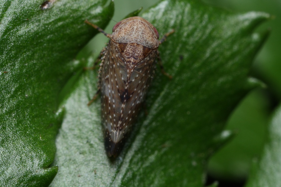 翅脈にブチミャクヨコバイのように白い斑点があるのが特徴です。2010年に撮影した当時は和名がなかったようですが、日本昆虫目録 第4巻 準新翅類 (2016年)ではツマグロカゴシマハトムネヨコバイという和名が付けられています。