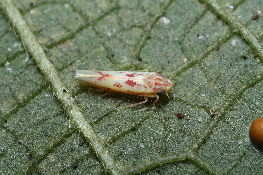 この個体は、赤い斑紋がつながっていないので、一見チマダラヒメヨコバイ風です。