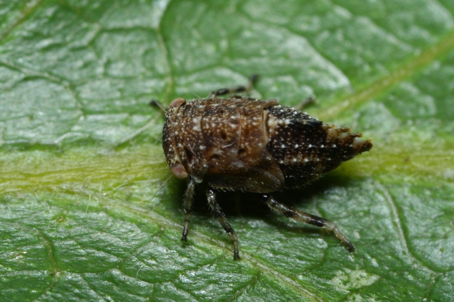幼虫は、全体的に暗褐色をしており、腹部背面の中央に鋸歯状の突起があります。写真の個体の体長は約3.5mmで、終齢幼虫だと思われます。