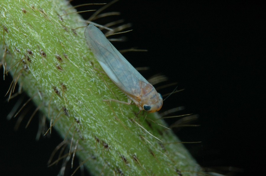 冬季にはシラカシや常緑性のシダの葉の裏側などで見られますが夏季にはクズの蔓に複数の個体が止まっているのを観察したことがあります。夏に見られる個体は、体の色は冬季と比べるとくすんだ色をしています。写真は、クズの蔓に止まっているカンキツヒメヨコバイ。