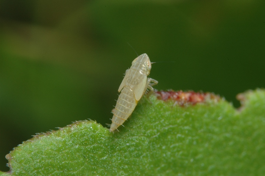 成虫を撮影したのと同じ場所にいたので、おそらくマダラヨコバイの幼虫だと思われます。頭頂部の形状や斑紋が成虫とよく似ています。