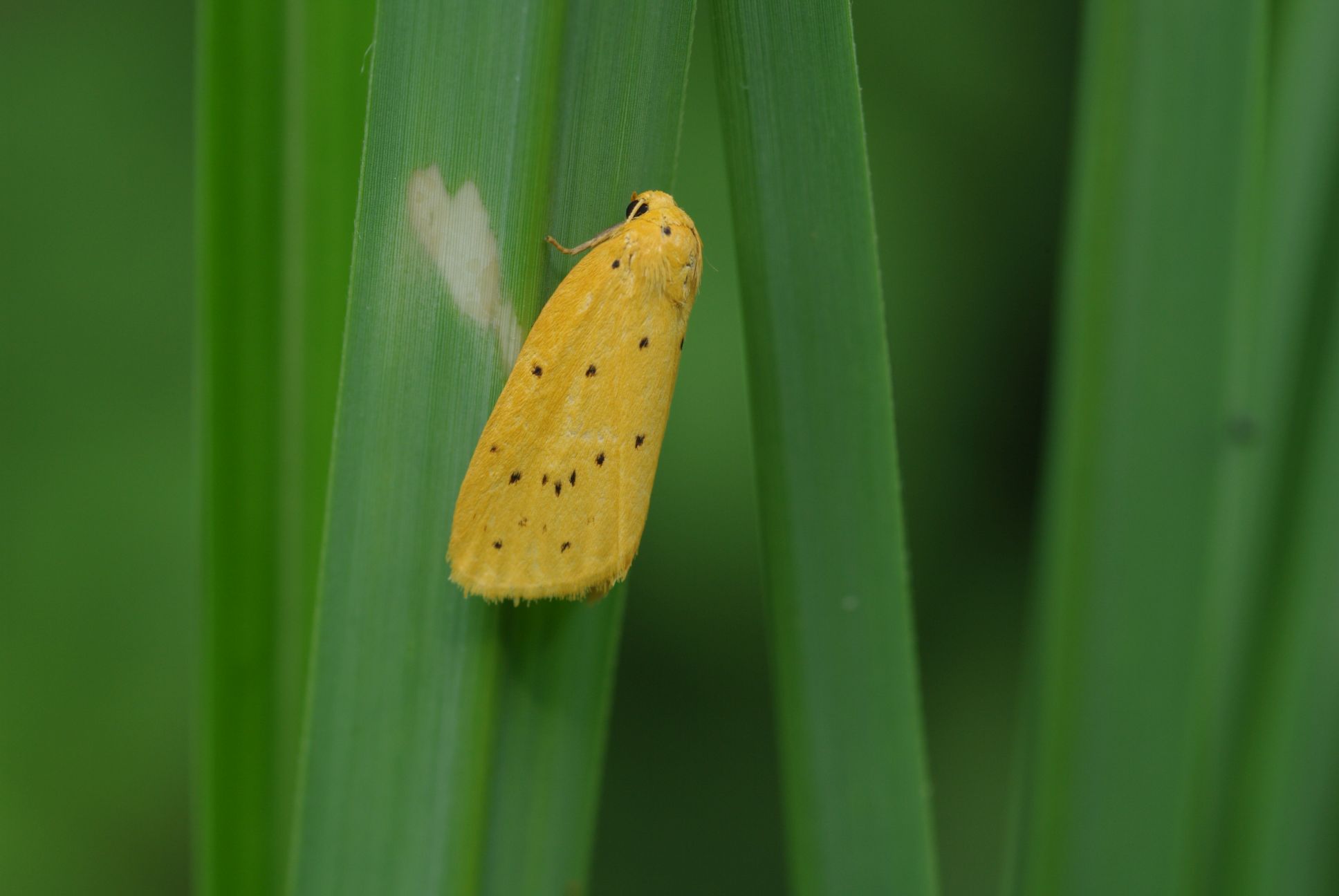 成虫は6-7月と8-9月の年2回発生。コケガの仲間としてはやや大型の種類。二回目に発生する個体はやや小型になるそうです。