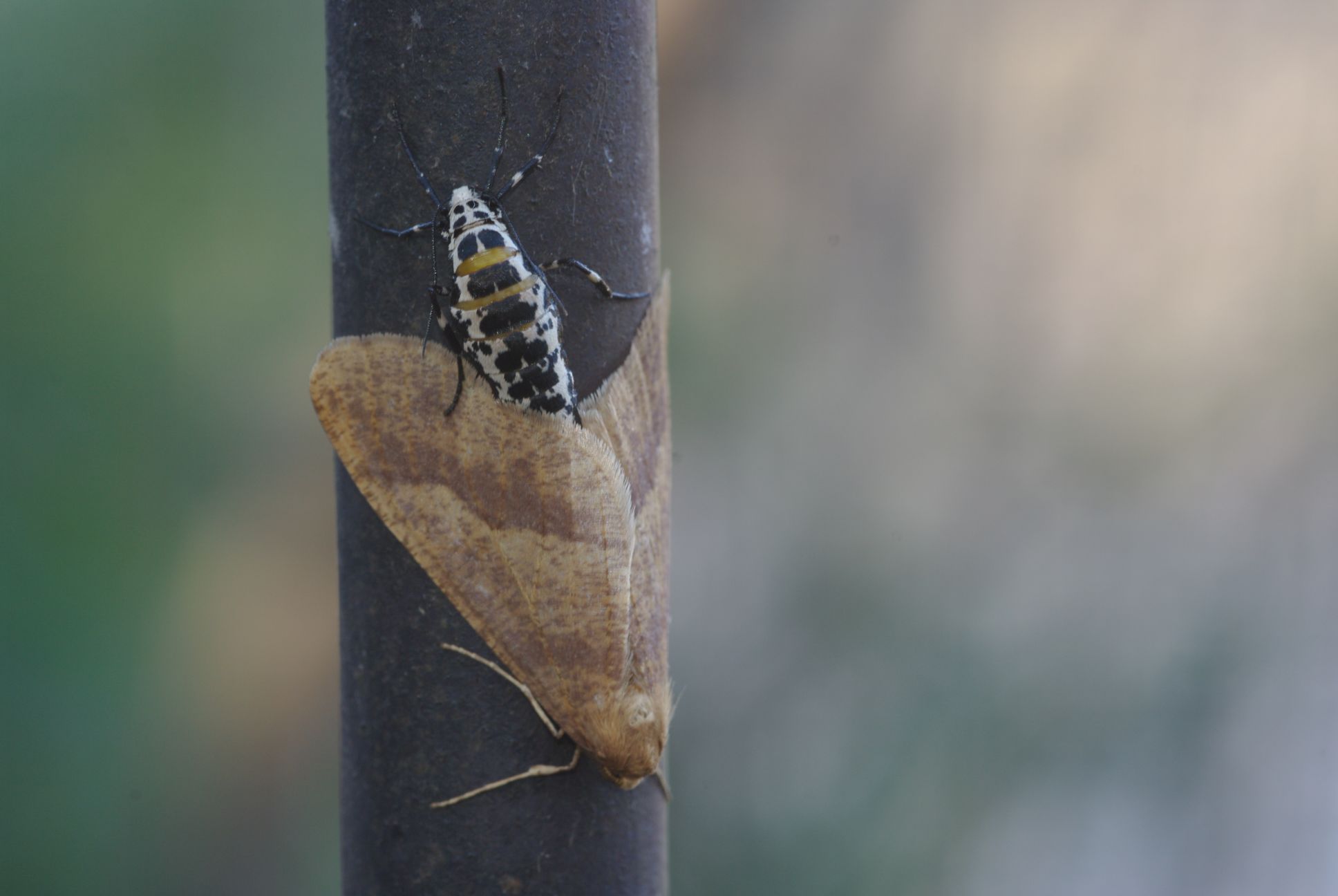 オスは名前の通り翅が茶色い蛾ですが、メスは翅が無く体の色も白地に黒い斑点で、とても同一種とは思えないような姿をしています。