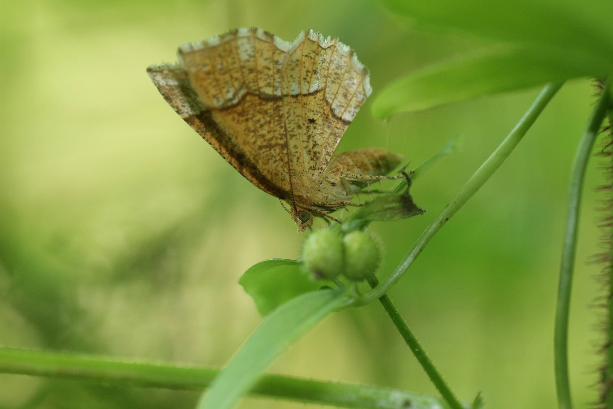普通のエダシャクとは異なり、チョウのように翅を閉じて止まります。