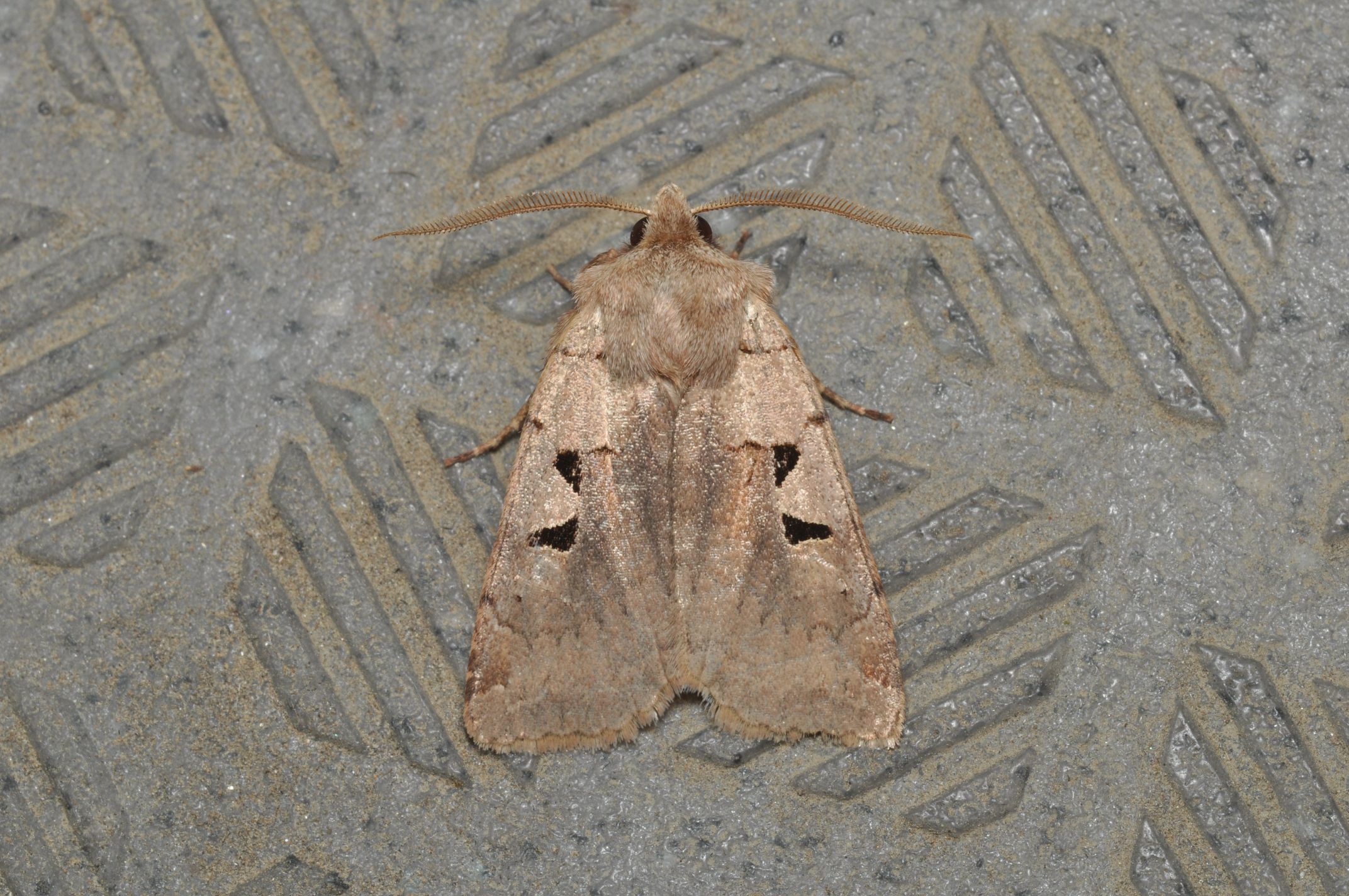 写真の個体では前翅の黒い三角形の斑紋が上下で離れていますが、この黒い紋がつながって、】のようになる個体もいるようです。