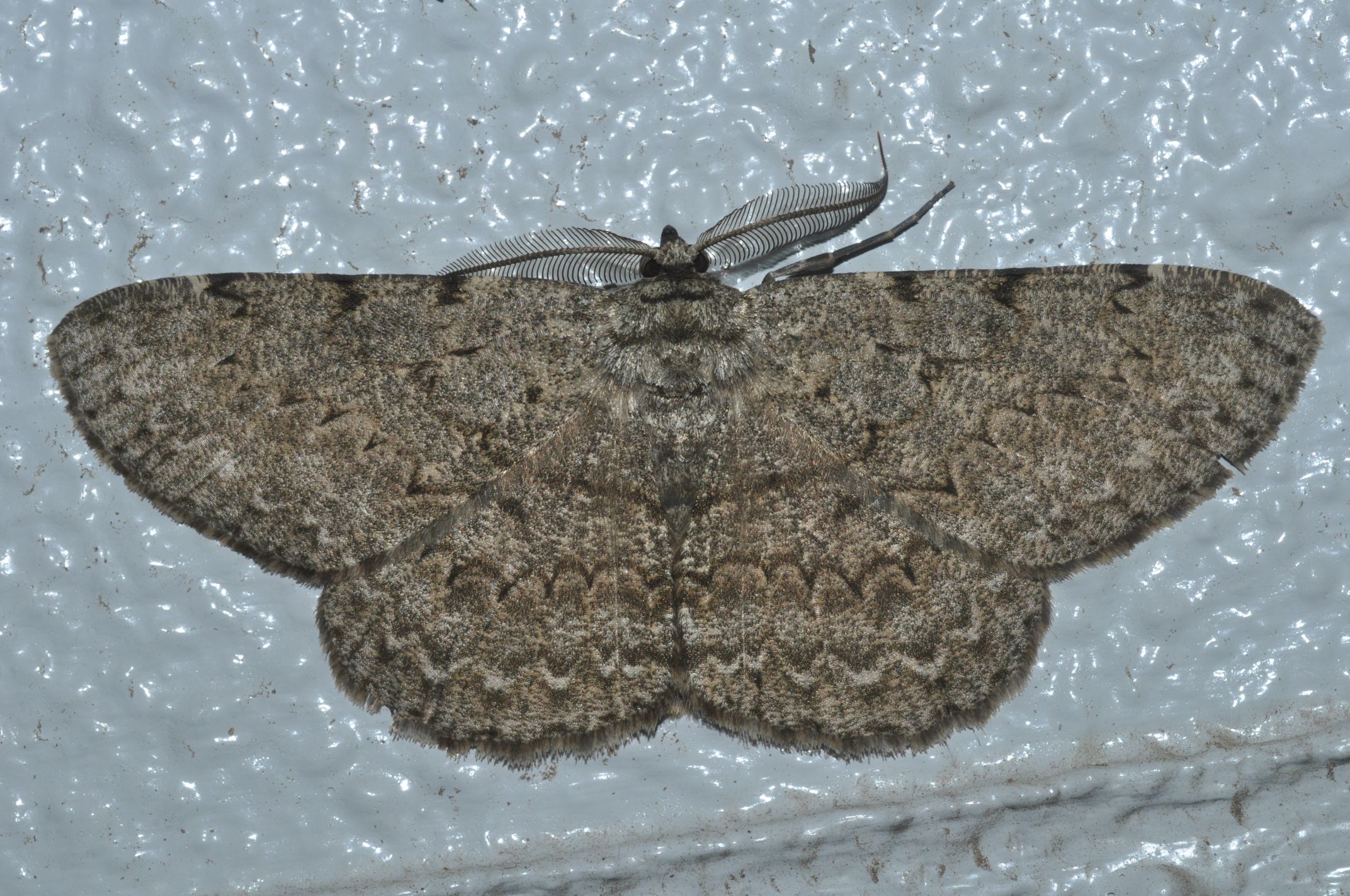 前種のオオバナミガタエダシャクと良く似ていますが、やや小型です。(本種は倍率1:2で撮影していますが、前種は1:3で撮影しています。)