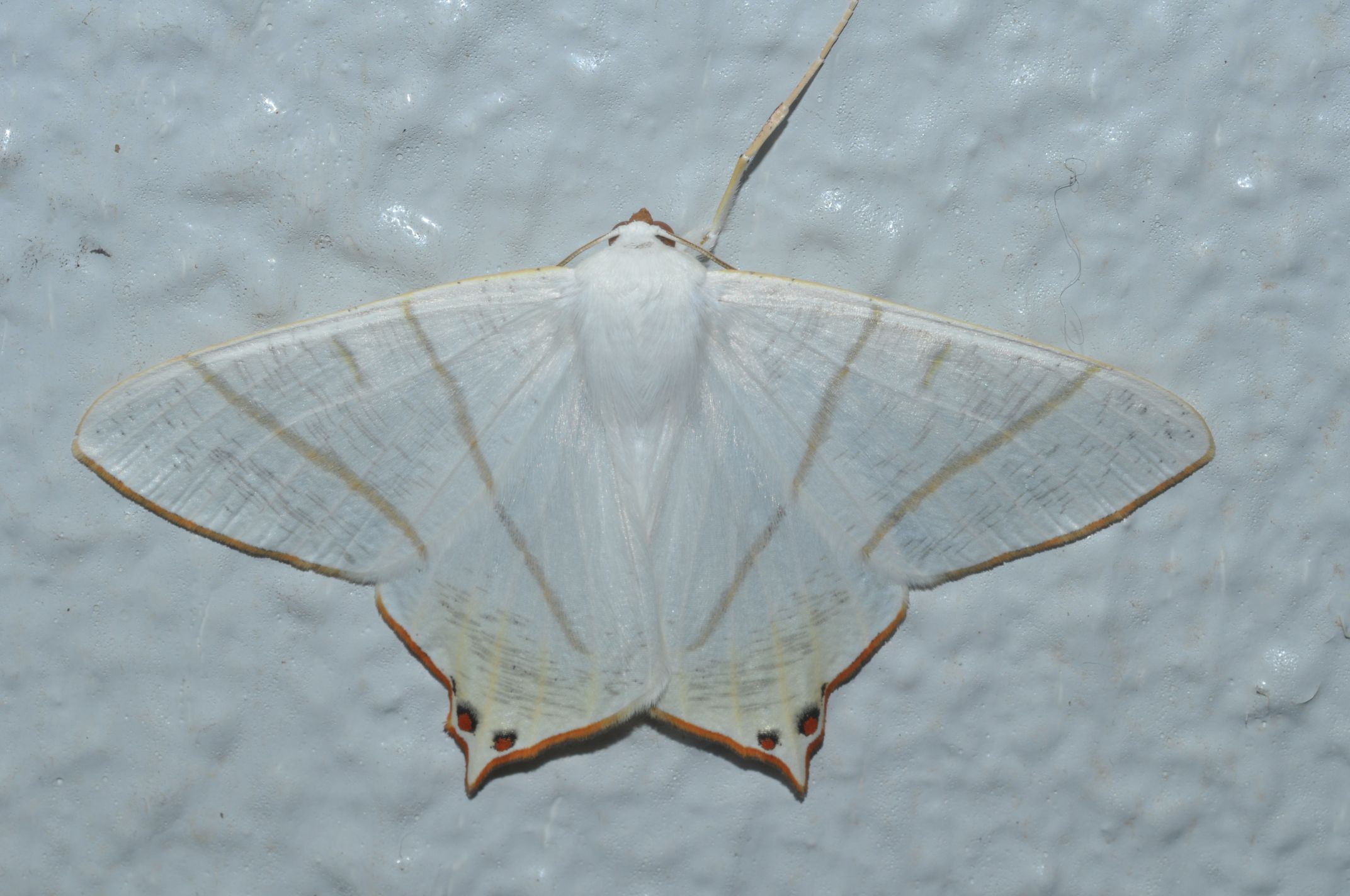 前翅に2本の灰色の線がありますが、ウスキツバメエダシャクでは、この2本の線の間の部分と、内側の灰色の線よりも内側の部分にも灰色のさざ波模様があります。