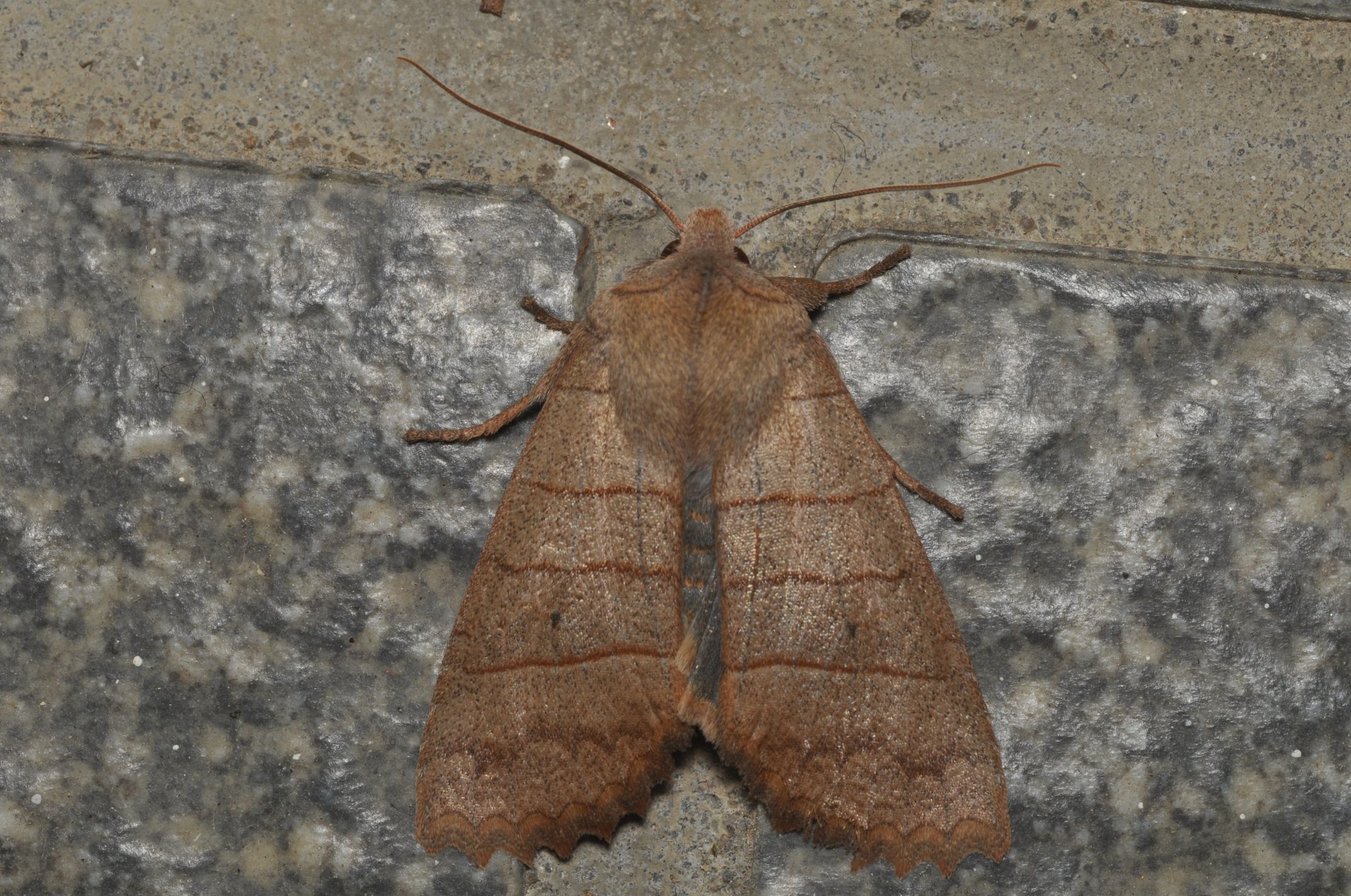 ノコメトガリキリガと色がよく似ていますが、ヨスジノコメキリガには名前の通り4本の筋があります。翅の外縁の凹凸がノコメトガリキリガと比較すると顕著です。