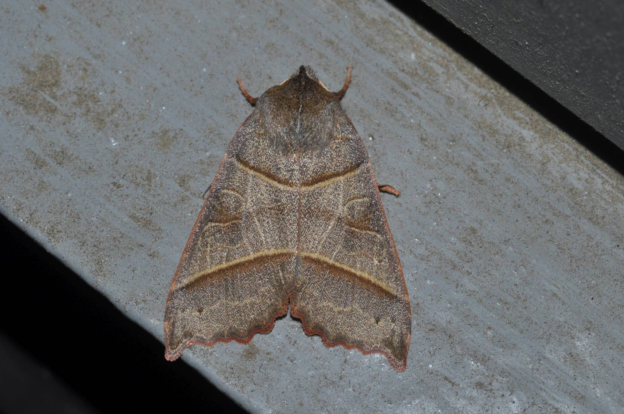 前翅の先端が尖り、外縁は凹凸になっているのが特徴です。キトガリキリガよりも大きい。