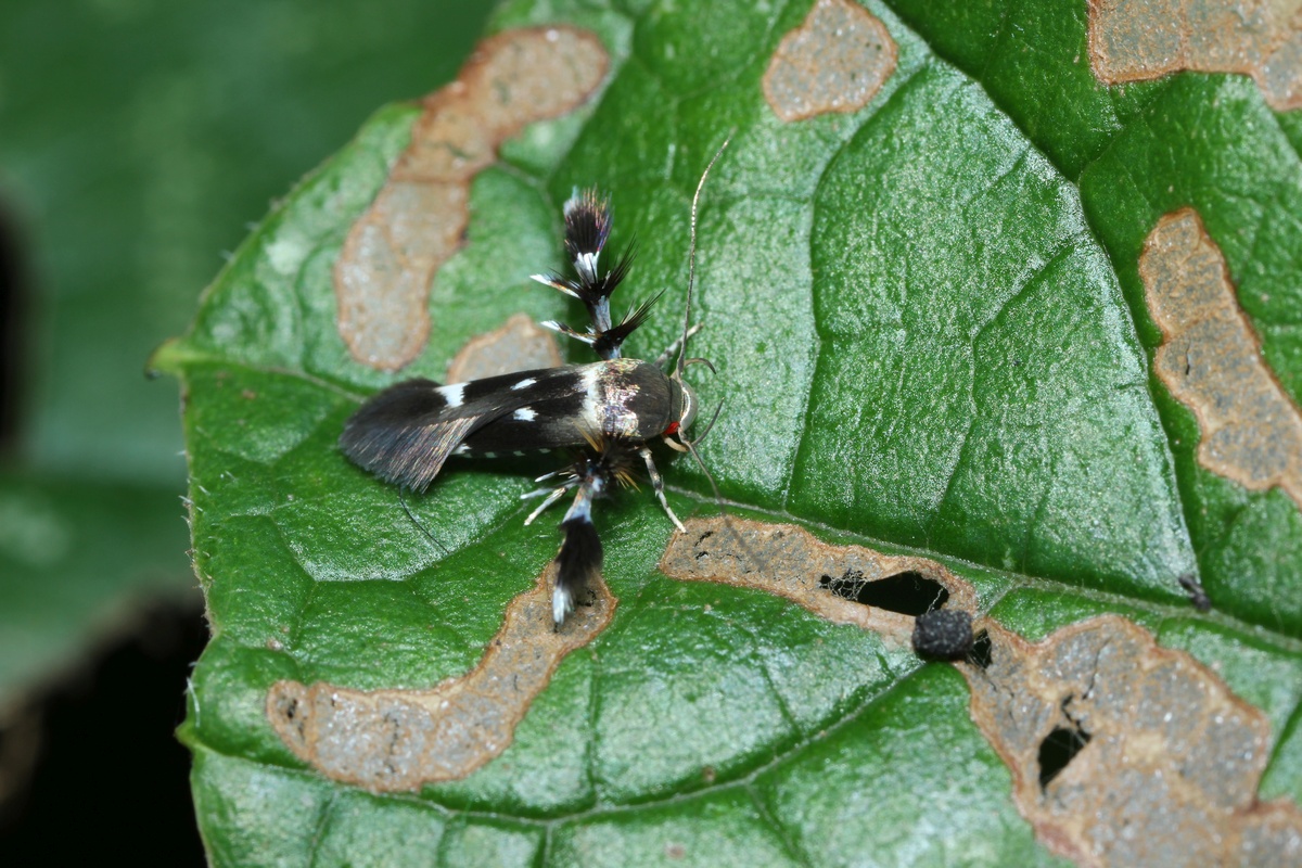 シロテンクロマイコガ