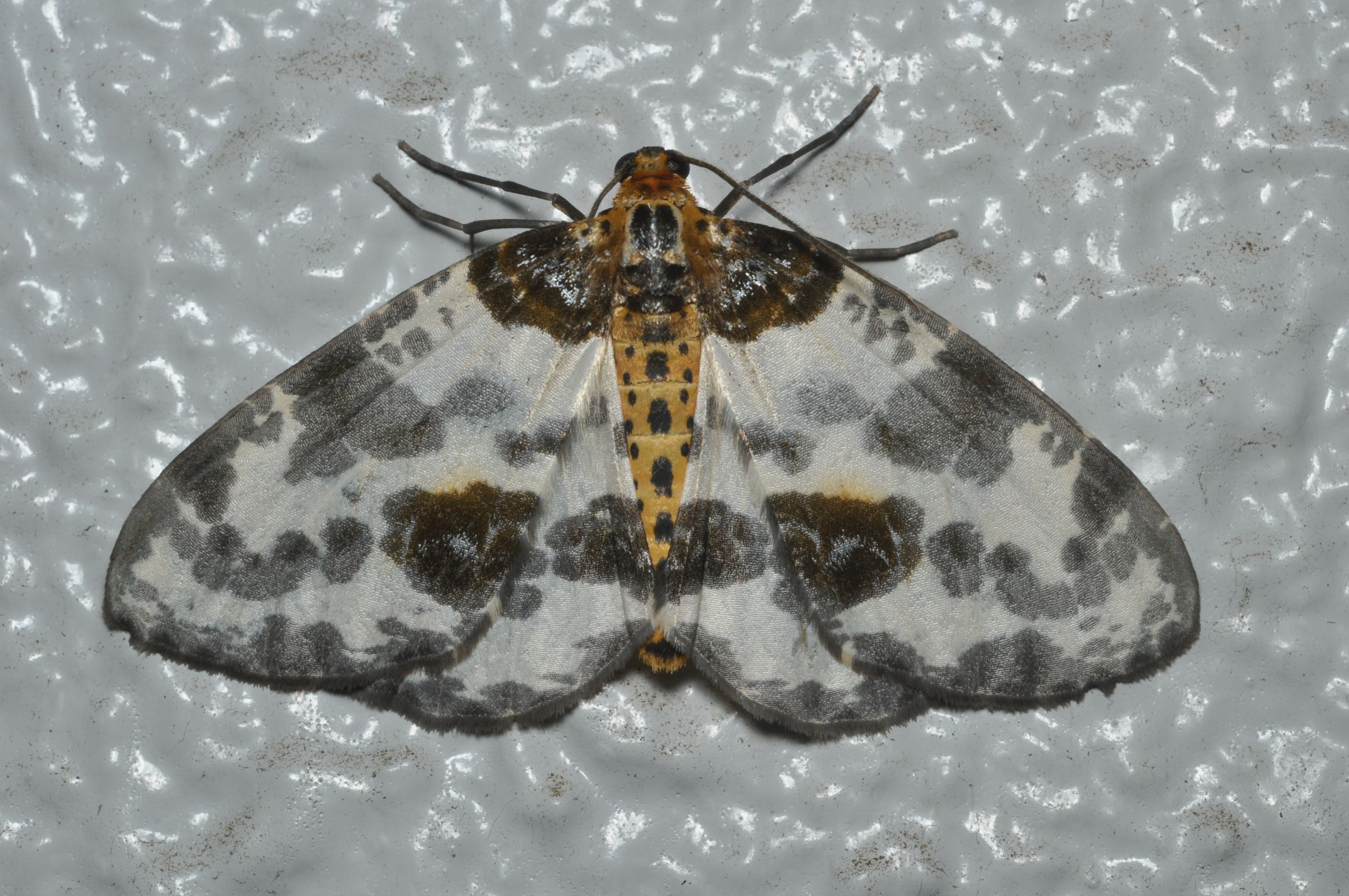 前翅前縁中央にある灰色の斑紋の中に黒いリング状の紋がなければユウマダラエダシャク。