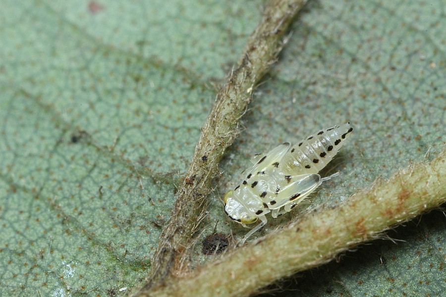 羽化後間もない色の薄い個体がケヤマハンノキにいたので、幼虫もいないかと探してみたところ思った通り見つけることができました。