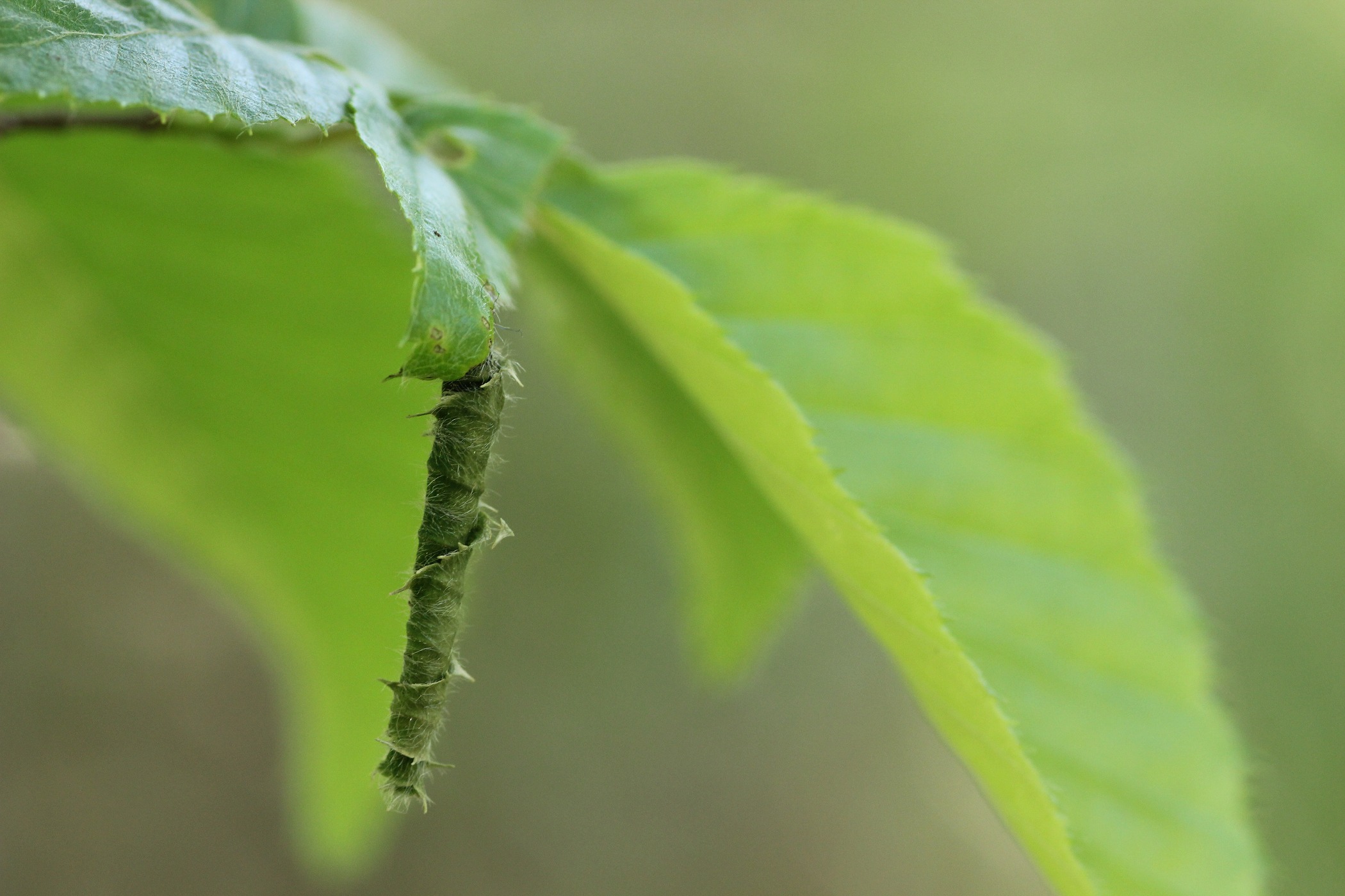 マルムネチョッキリはイヌシデなどの葉を細長く巻いて揺籃をつくります。